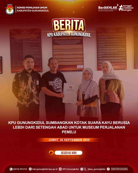 Jumat, 26 September 2025, Komisi Pemilihan Umum Republik Indonesia (KPU RI) secara resmi mengambil alih sebuah kotak suara bersejarah dari KPU Kabupaten Gunungkidul. Kotak suara tersebut sebelumnya disimpan oleh Almarhum H. Tambi Sastrohudoyo, seorang tokoh masyarakat Kalurahan Piyaman, Kabupaten Gunungkidul, yang dikenal luas atas kiprahnya dalam berbagai kegiatan sosial dan kemasyarakatan.
