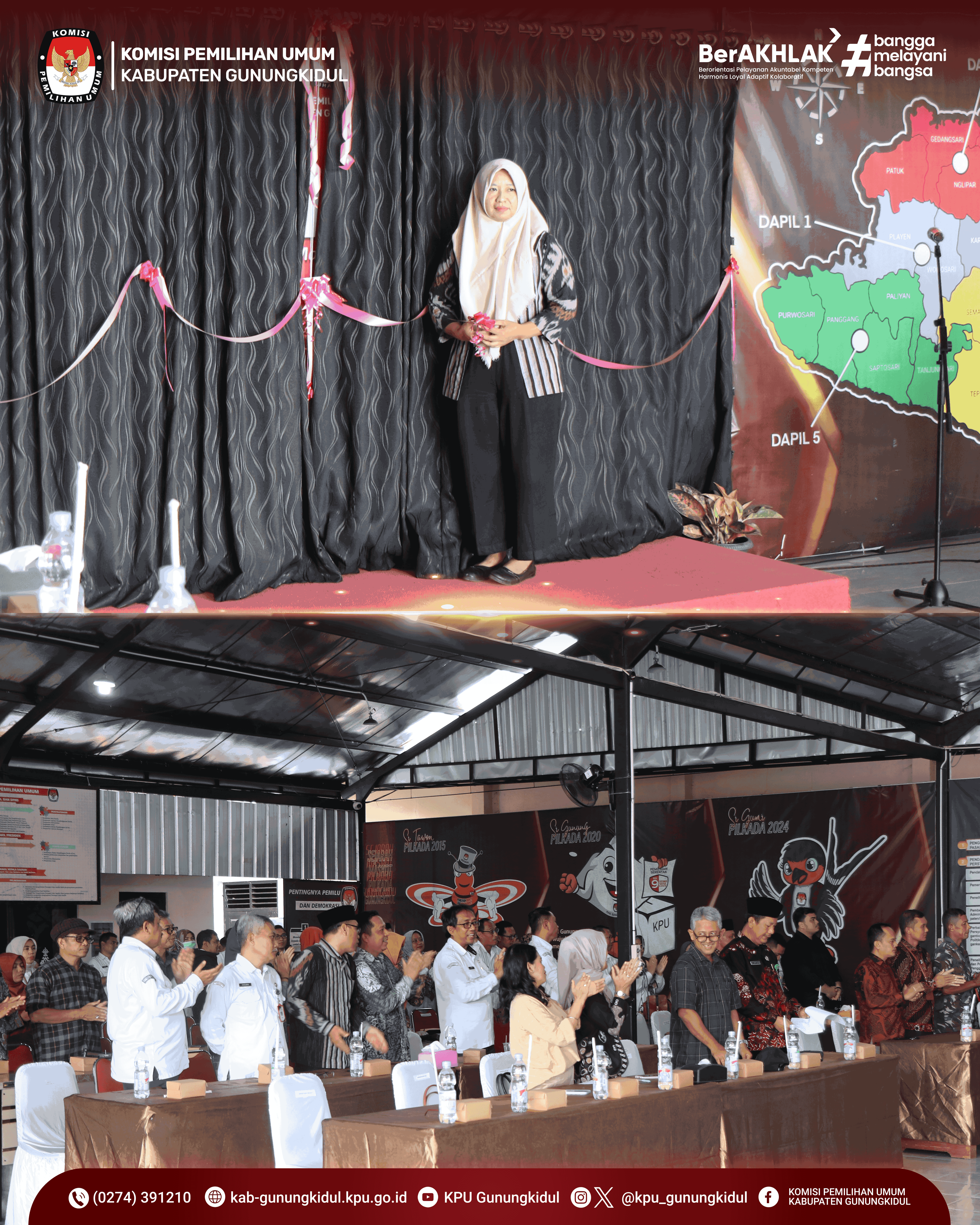 Kegiatan berlangsung di Kantor KPU Kabupaten Gunungkidul dan dihadiri oleh Ketua dan Anggota KPU DIY, Sekretaris serta pejabat struktural di lingkungan KPU DIY, Forkopimda Kabupaten Gunungkidul, BAWASLU Kabupaten Gunungkidul, Dinas Instansi Terkait, Media, serta Ketua, Anggota, Sekretaris, dan pejabat struktural KPU Kabupaten/Kota se-DIY.