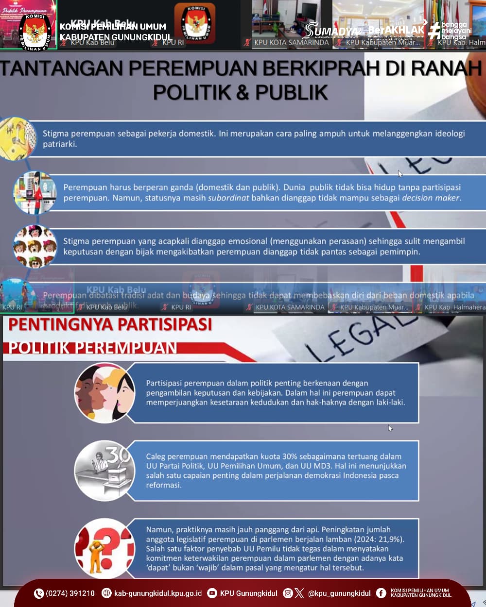KPU Kabupaten Gunungkidul berkesempatan hadir melalui daring dalam Diskusi Publik dan Penghargaan Hari Ibu ke-97 yang diselenggarakan oleh KPU RI