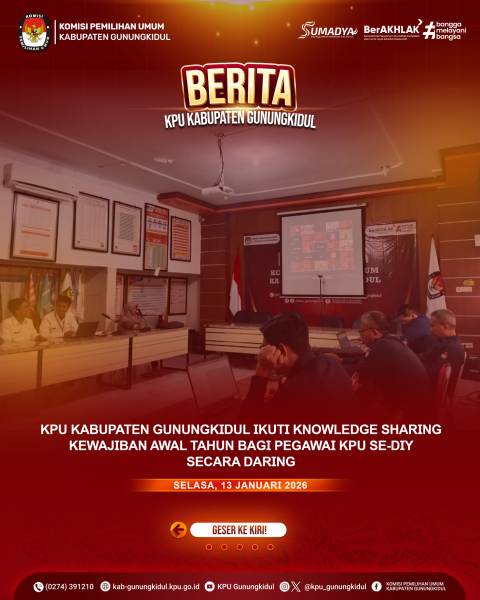 KPU Kabupaten Gunungkidul mengikuti kegiatan Knowledge Sharing Kewajiban Awal Tahun bagi Pegawai di lingkungan Komisi Pemilihan Umum se-Daerah Istimewa Yogyakarta.