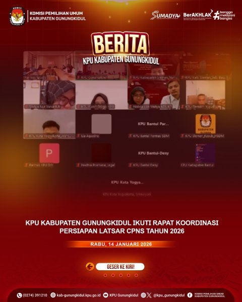 KPU Kabupaten Gunungkidul mengikuti Rapat Koordinasi Persiapan Pelaksanaan Latihan Dasar (LATSAR) CPNS Tahun 2026 yang diselenggarakan oleh KPU Daerah Istimewa Yogyakarta.