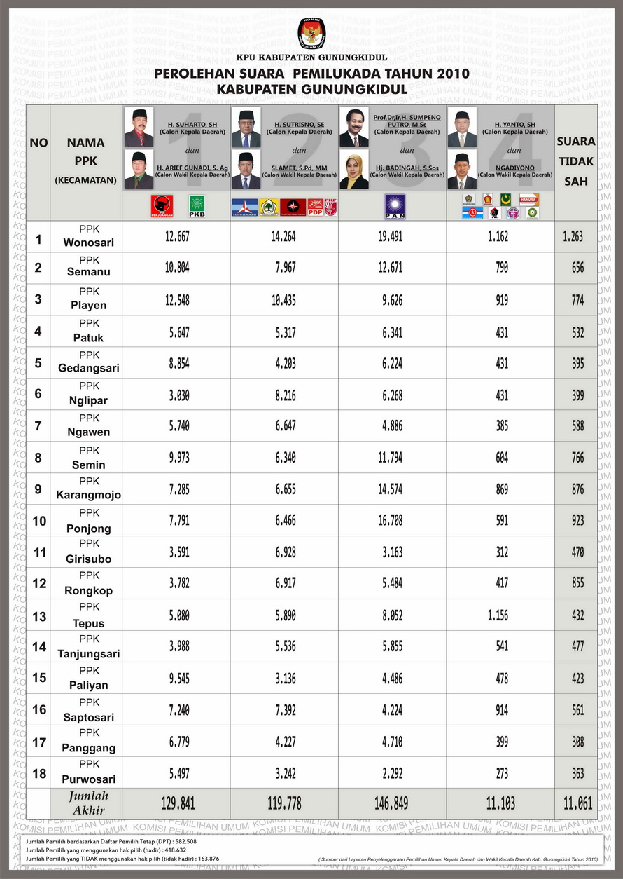 Dengan demikian maka Calon Terpilih dalam Pemilihan Umum Kepala Daerah dan Wakil Kepala Daerah Kabupaten Gunungkidul Tahun 2010 adalah :