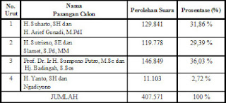 Hasil rekapitulasi penghitungan suara tingkat kabupaten adalah sebagai berikut :