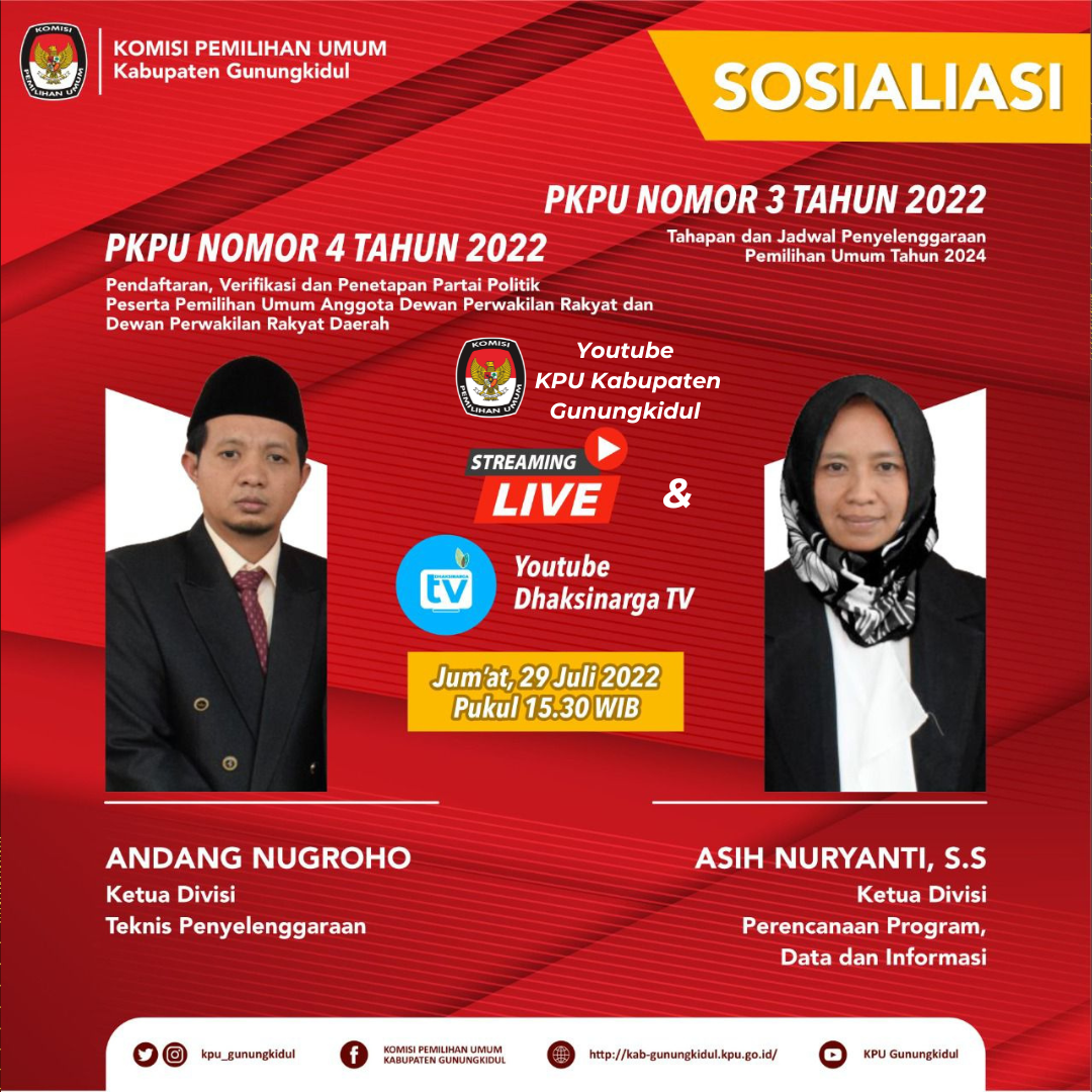 Menghadirkan Anggota KPU Kabupaten Gunungkidul Andang Nugroho dan Asih Nuryanti yang akan menjelaskan tentang