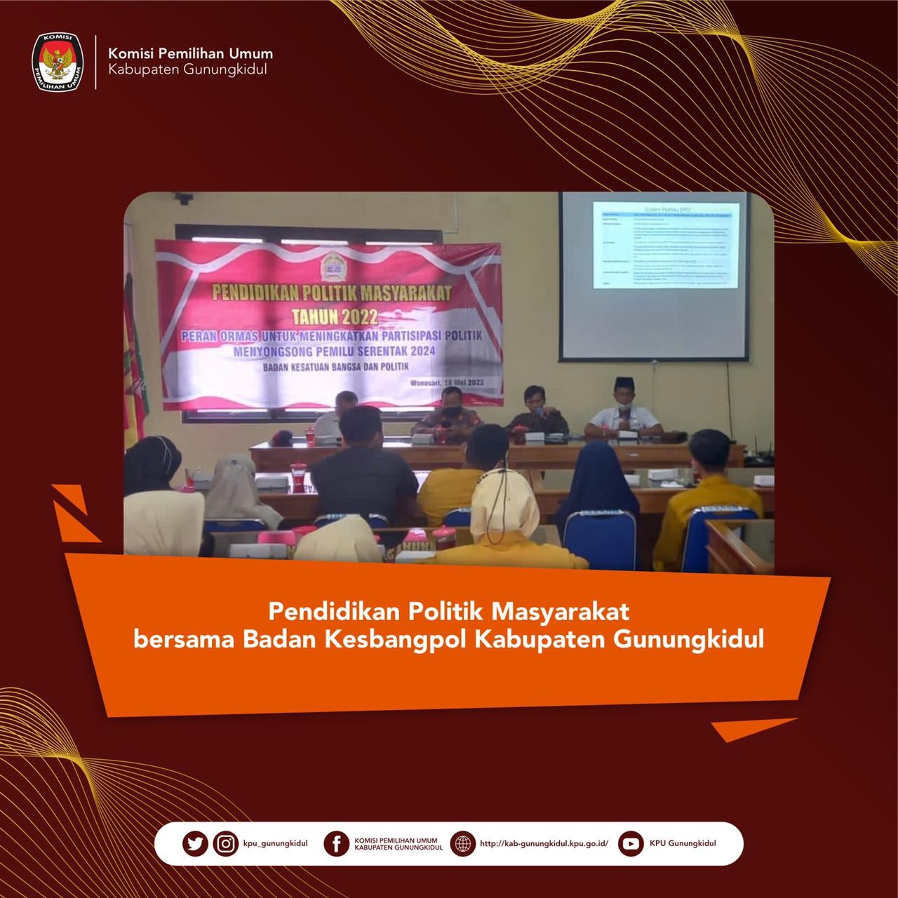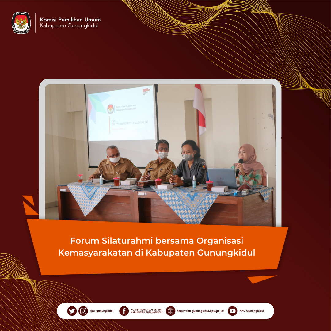 Wonosari (23/5), KPU Kabupaten Gunungkidul hadir dalam acara forum silaturahmi organisasi kemasyarakatan yang diadakan oleh Badan Kesatuan Bangsa dan Politik Kabupaten Gunungkidul. Hadir dalam acara tersebut yaitu anggota KPU Kabupaten Gunungkidul Supami, selaku Ketua Divisi Sosialisasi Pendidikan Pemilih, Partisipasi Masyarakat, dan SDM serta Anggota Bawaslu Kabupaten Gunungkidul, Rini Iswandari yang keduanya menjadi narasumber. Serta dihadiri oleh Kepala Badan Kesatuan Bangsa Dan Politik Kabupaten Gunungkidul, dan sejumlah Organisasi Kemasyarakatan di Gunungkidul Kegiatan yang bertempat di Ruang Rapat Kapanewon Wonosari ini mengangkat tema “Menyongsong Tahun Politik untuk Meningkatkan Partisipasi Organisasi Kemasyarakatan dalam Pemilu Tahun 2024”. Dalam sambutannya kepala Badan Kesatuan Bangsa dan Politik Kabupaten Gunungkidul Johan Eko Sudarto, S.Sos., MH menyampaikan harapan agar dengan adanya kegiatan ini dapat menciptakan Organisasi Kemasyrakatan sebagai pemilih yang cerdas, tidak ela-elu, dan nantinya memilih calon pemimpin sesuai dengan hati nuraninya. Sementara itu dalam paparannya, Supami menyampaikan Undang-Undang Nomor 7 Tahun 2017 tentang Pemilihan Umum yang didalamnya terdapat Asas Pemilu yaitu Langsung, Umum, Bebas, Rahasia, Jujur, dan Adil. LANGSUNG yang berarti dimana semua warga yang memiliki hak pilih maka bisa langsung memilih. UMUM yang berarti pemilihan umum ini diikuti oleh selulur warga negara yang memiliki hak, diselenggarakan, dan dilakukan secara bersama-sama. BEBAS yang berarti menggunakan hak pilihnya tanpa ada paksaan sedikitpun, setiap warga negara berhak menentukan pilihannya. RAHASIA yang berarti tidak boleh setelah memilih kemudian memberitahu orang lain, tidak boleh masuk bilik berdua kecuali memiliki kebutuhan khusus serta tidak boleh memfoto. JUJUR yang berarti tidak ada kecurangan dari semua pihak. Serta ADIL yang berarti perlakuan yang sama untuk semua pemilih, penyelenggara, dan yang dipilih.