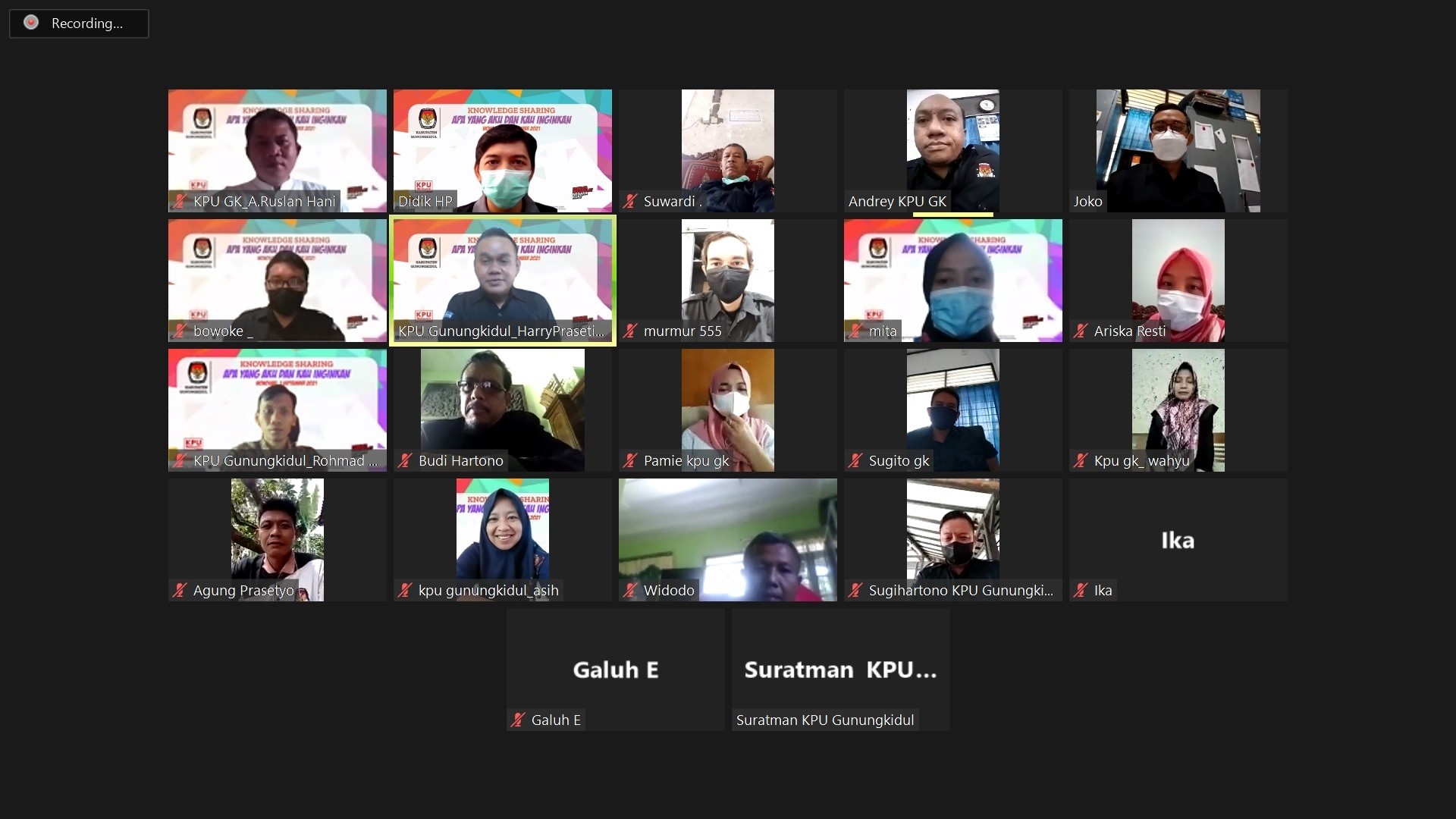 Wonosari,31/08/2021. Kegiatan Knowledge Sharing ini membahas tentang Standard Operating Procedure (Alur Kerja) atau yang lebih terkenal disebut SOP dengan penekanan pada SOP Penerimaan Tamu. Harry Prasetiyo selaku Nara Sumber menyampaikan bahwa Dalam instansi pemerintahan, SOP berfungsi untuk memudahkan para pegawai bekerja sesuai dengan tugas pokok dan fungsinya. SOP dibuat dari dan untuk semua pegawai KPU Kabupaten Gunungkidul, dengan semangat untuk menciptakan Lingkungan Kerja yang sesuai dengan apa yang selama ini kita inginkan, yaitu Lingkungan Kerja yang bertanggungjawab, nyaman, aman, harmonis dan sesuai dengan tugas pokok dan fungsi KPU Kabupaten Gunungkidul. Salah satu SOP yang cukup penting pada masa pandemi covid-19 ini adalah SOP Penerimaan Tamu. Beberapa hal pokok yang perlu menjadi perhatian dalam menerima tamu adalah; 1. Memastikan Tamu dalam keadaan sehat, dengan melakukan screening, antara lain: pengecekan suhu tubuh dan mencuci tangan 2. Penelusuran kepentingan Tamu dengan mengisi buku tamu 3. Mengantarkan Tamu ke tujuan sesuai kepentingan apabila screening dan penelusuran kepentingan sudah dilakukan Untuk SOP kegiatan yang lain akan dibahas pada sesi knowledge sharing selanjutnya. Doharapkan kegiatan ini dapat meningkatkan kualitas kinerja pada KPU Kabupaten Gunungkidul. (JT-DHP[KUL])
