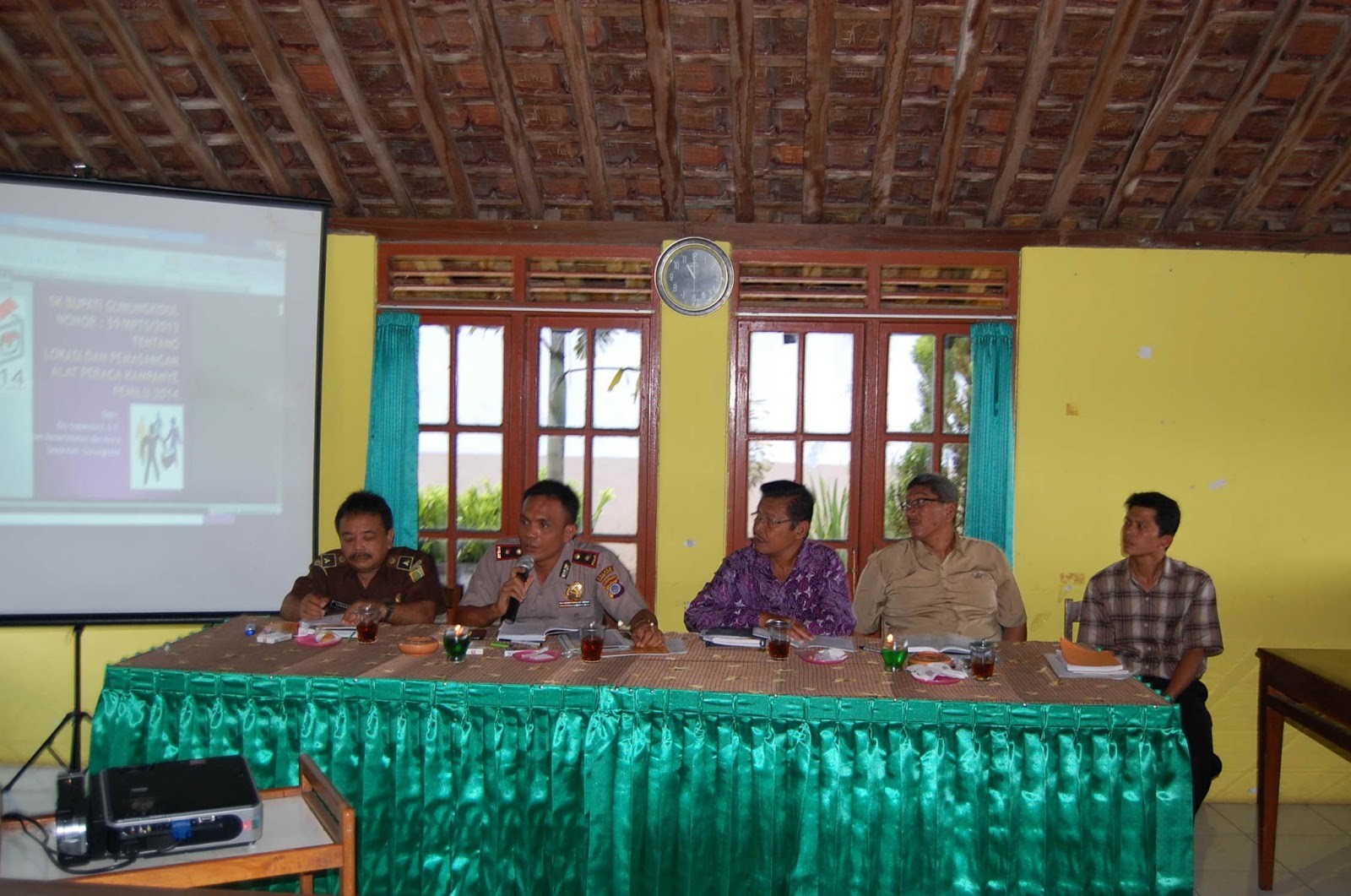 Menjelang Pemilu 2014, KPU mulai memasuki beberapa tahapan, salah satu tahapan yang dilakukan adalah pelaksanaan kampanye, untuk mempersiapkan tahapan ini, pada hari Selasa tanggal 29 Januari 2013 KPU Kabupaten Gunungkidul mengadakan Rapat dan Sosialisasi dengan tema “Dokumentasi dan Informasi Hukum Terkait Peraturan KPU No 01 Tahun 2013 Tentang Pedoman Pelaksanaan Kampanye Pemilu Anggota DPR, DPD dan DPRD dan Keputusan Bupati Gunungkidul No. 59/KPTS/2013 Tentang Lokasi dan Pemasangan Alat Peraga Kampanye Pemilu 2014 Kabupaten Gunungkidul”. Kegiatan yang bertempat di Rumah Makan Bu Tiwi Tan Tlogo ini dihadiri oleh Komisi A DPRD Gunungkidul, Panwaslu Gunungkidul, Kejaksaan Tinggi Gunungkidul, Polres Gunungkidul, Kodim Gunungkidul, SKPD terkait dan Partai Politik Peserta Pemilu 2014. Dalam sambutannya, Ketua KPU Gunungkidul, Drs.H. Sukimin,MM, mengatakan KPU Kabupaten Gunungkidul bertekad melaksanakan Pemilu secara obyektif meskipun banyak tantangan. Dengan harapan Pemilu 2014 dapat berjalan lancar dan sukses. Begitupun dengan Partai Politik yang harus bersiap untuk menang dan kalah.