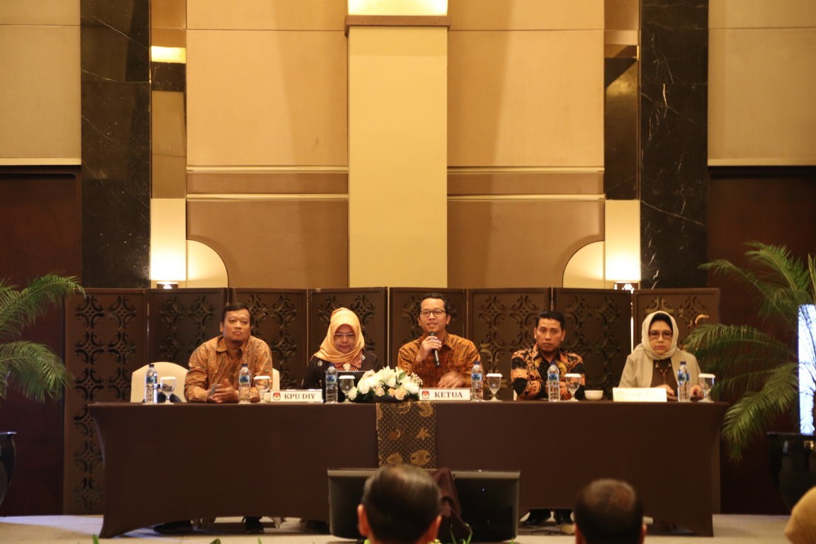 Evaluasi ini mengundang Ketua KPU Kabupaten/Kota Se-DIY yang terdiri dari jajaran Anggota, Sekretaris, Kepala Sub Bagian Hukum, Kepala Sub Bagian Teknis, Kepala Sub Bagian Program Dan Data, serta Kepala Sub Bagian Keuangan Umum dan Logistik, Ketua Bawaslu DIY, Anggota Tim Pokja dari unsur Kejaksaan Tinggi DIY dan Hicon Law Policy Strategic.