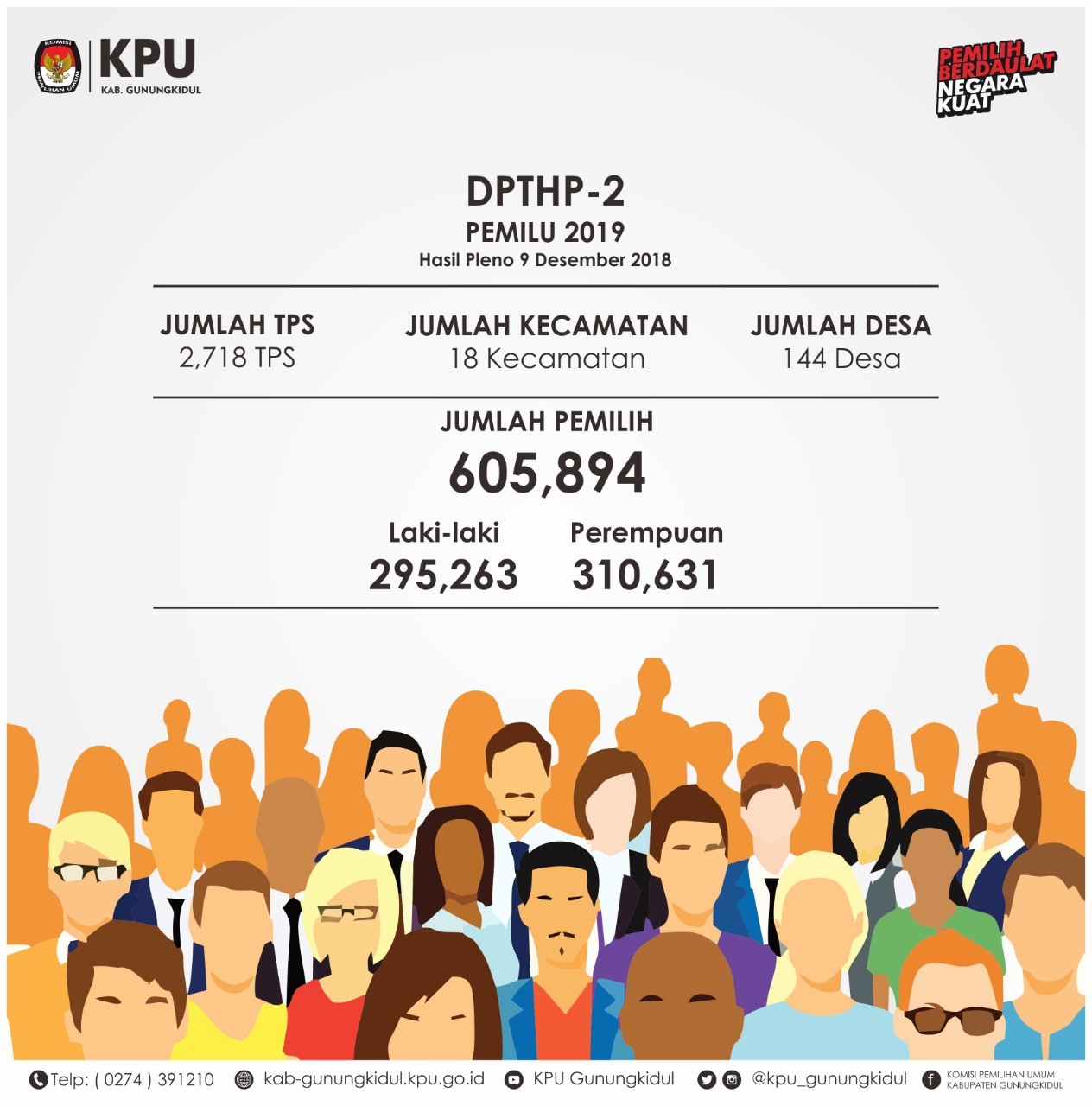 Komisi Pemilihan Umum Kabupaten Gunungkidul dengan perantara KPKNL Yogyakarta akan melaksanakan Lelang Kotak Suara Berbahan Alumunium dengan berat total 19.774 Kg dan Harga Limit Rp 296.610.000,00 (Dua Ratus Sembilan Puluh Enam Juta Enam Ratus Sepuluh Ribu Rupiah) dengan penawaran secara tertulis melalui internet (e-Auction) tanpa kehadiran peserta lelang cara penawaran tertutup (closed bidding). Syarat dan Ketentuan Lelang : 1. Cara Penawaran Lelang dilaksanakan dengan penawaran secara tertulis melalui internet (e-Auction) tanpa kehadiran peserta lelang cara penawaran tertutup (closed bidding), dibuka dengan browser pada alamat domain https://www.lelang.go.id. Tata cara mengikuti lelang dapat dilihat di menu “Prosedur Lelang e-Auction” serta calon peserta lelang diharuskan membaca terlebih dahulu menu “Syarat dan Ketentuan” sebagaimana terdapat pada domain tersebut. 2. Pendaftaran Calon peserta lelang mendaftarkan diri dan mengaktifkan akun pada alamat domain di atas dengan merekam serta mengunggah softcopy KTP dan memasukkan data NPWP serta nomor rekening atas nama sendiri. 3. Waktu Pelaksanaan a. Penawaran lelang dapat dilakukan melalui domain di atas sejak pengumuman lelang ini terbit sampai dengan lelang ditutup pada: Hari/tanggal : Kamis / 17 Januari 2019 Pukul : 10.00 waktu server Aplikasi Lelang e-Auction (sesuai WIB) b. Pembukaan penawaran lelang oleh Pejabat Lelang dilakukan pada: Hari/tanggal : Kamis / 17 Januari 2019 Pukul : 10.00 waktu server Aplikasi Lelang e-Auction (sesuai WIB) Tempat : Kantor KPU Kabupaten Gunungkidul, Jl. Ki Demang Wonopawiro, Piyaman, Wonosari, GK, DIY c. Peserta lelang diharap menyesuaikan diri dengan penggunaan waktu server yang tertera pada alamat domain tersebut diatas. 4. Uang Jaminan Penawaran Lelang a. Peserta lelang diwajibkan menyetor uang jaminan lelang sebesar Rp 120.000.000,00 (Seratus Dua Puluh Juta Rupiah) dengan nominal HARUS sama dengan nominal uang jaminan yang disyaratkan penjual dalam pengumuman lelang ini (bukan dicicil) dan sudah efektif selambat-lambatnya 1 (satu) hari sebelum pelaksanaan lelang. b. Penyetoran uang jaminan ditujukan ke nomor Virtual Account (VA) masing-masing peserta lelang. Nomor VA diperoleh dari Aplikasi Lelang e-Auction setelah peserta lelang mengikuti proses pendaftaran dan data identitas dinyatakan valid. c. Uang jaminan dari peserta lelang yang tidak dinyatakan sebagai pemenang lelang akan dikembalikan lagi ke peserta lelang. Pejabat Lelang tidak akan melakukan pemotongan atas pengembalian uang jaminan dimaksud. Segala biaya yang timbul sebagai akibat transaksi perbankan sepenuhnya menjadi tanggung jawab peserta lelang. 5. Penawaran Lelang a. Penawaran harga lelang menggunakan token yang akan dikirim secara otomatis dari alamat domain di atas kepada email masing-masing peserta lelang setelah peserta lelang menyetor uang jaminan lelang. b. Penawaran lelang dimulai paling sedikit sama dengan nilai limit. Penawaran lelang dapat dikirimkan berkali-kali sampai batas waktu sebagaimana angka 3 huruf a. 6. Pelunasan dan Pengambilan Obyek Lelang a. Pemenang lelang harus melunasi harga pembelian dan bea lelang sebesar 2% paling lambat 5 (lima) hari kerja setelah pelaksanaan lelang. b. Penyetoran pelunasan ditujukan ke nomor VA pemenang lelang. c. Apabila pemenang lelang wanprestasi atau tidak melunasi kewajiban pembayaran sesuai ketentuan di atas, maka uang jaminan akan disetorkan ke Kas Negara. d. Peserta lelang yang dinyatakan sebagai Pemenang atau kuasanya dapat mengambil objek lelang pada Penjual atau Panitia lelang KPU Kabupaten Gunungkidul Jl Ki Demang Wonopawiro, Piyaman, Wonosari, Gunungkidul paling lambat tanggal 23 Januari 2019 pada hari kerja jam 09:00 s.d 15.00 WIB, setelah melunasi seluruh kewajiban. Panitia lelang KPU Kabupaten Gunungkidul tidak bertanggung jawab atas segala kerusakan/kehilangan, apabila barang diambil setelah tanggal tersebut. 7. Obyek Lelang a. Obyek lelang dalam kondisi apa adanya. Obyek lelang berupa kotak suara berbahan alumunium, namun pada pegangan samping dan tempat gembok menggunakan bahan besi dengan berat kurang lebih 6% dari berat obyek lelang. Foto, spesifikasi teknis, dan informasi tentang obyek lelang dapat dilihat pada alamat domain diatas. Obyek lelang dapat dilihat secara langsung di Kantor Komisi Pemilihan Umum Kabupaten Gunungkidul Jl Ki Demang Wonopawiro, Piyaman, Wonosari, Gunungkidul pada tanggal 10 Januari 2019 s.d 16 Januari 2019 pada hari kerja jam 09:00 s.d 15.00 WIB. b. Peserta lelang yang dinyatakan sebagai pemenang lelang atau kuasanya mengambil obyek lelang secara langsung ke Penjual atau Panitia lelang KPU Kabupaten Gunungkidul. Penjual tidak menerima pengiriman obyek lelang kepada pembeli lelang. Untuk keterangan lebih lanjut dapat menghubungi Panitia Lelang KPU Kabupaten Gunungkidul telp (0274) 391210. Waktu dan Tempat Pelaksanaan Lelang: Hari/tanggal : Kamis / 17 Januari 2019 Pukul : 10.00 waktu server Aplikasi Lelang e-Auction (sesuai WIB) Tempat : Kantor KPU Kabupaten Gunungkidul, Jl. Ki Demang Wonopawiro, Piyaman, Wonosari, GK, DIY Gunungkidul, 10 Januari 2019 Ketua Panitia Lelang ttd Drs. Budi Hartono, SH NIP 19630914 198602 1 002