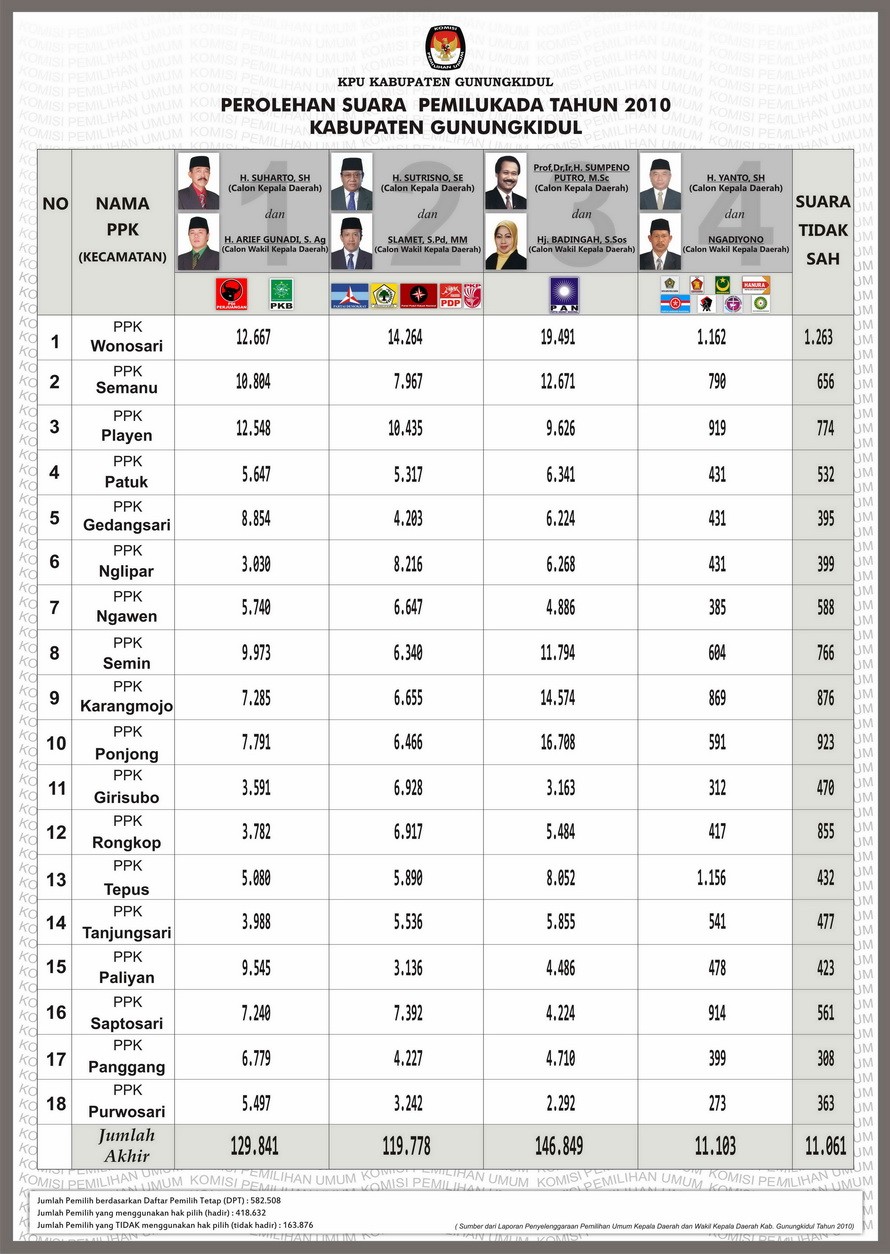 Dengan demikian maka Calon Terpilih dalam Pemilihan Umum Kepala Daerah dan Wakil Kepala Daerah Kabupaten Gunungkidul Tahun 2010 adalah :